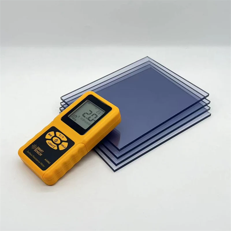 यह एंटी-स्टैटिक शीट व्यापक रूप से इलेक्ट्रॉनिक्स कार्यशालाओं, सेमीकंडक्टर विनिर्माण और असेंबली लाइन वर्कस्टेशन में उपयोग की जाती है। यह सुरक्षात्मक ढालों, कार्यक्षेत्र कवरों और भंडारण कंटेनरों के लिए आदर्श है जहां स्थैतिक निर्वहन घटकों या प्रणालियों को नुकसान पहुंचा सकता है।
